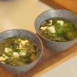 - To serve, place the prepared wakame and tofu into serving bowls. Ladle the hot miso soup directly over the top, then garnish with the finely sliced spring onions. Serve immediately.