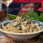 A bright, seaside-inspired pasta bursting with tender snapper, garlicky chilli heat, briny anchovies, and zingy capers. Tossed with spaghetti in a light white wine and lemon sauce, it’s fresh, vibrant, and perfect for a sun-soaked lunch or dinner.